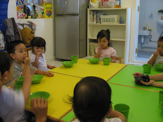 Anyway, back to the highlight of our day...we met Aunty Wendy, Aunty Dawn, Aunty Jasmine & Aunty Ee Ling for lunch at Billy Bombers! Lil' Angel was in an extremely good mood during lunch and she was busy entertaining the aunties with her cheeky antics! For that, they rewarded her with FRIES!